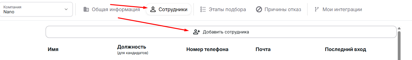 ΠΠΎΠ±Π°Π²ΠΈΡΡ ΡΠΎΡΡΡΠ΄Π½ΠΈΠΊΠ° → Π²Π²Π΅Π΄ΠΈ ΡΠ΅Π»Π΅ΡΠΎΠ½, ΠΏΠΎΡΡΡ, ΠΈΠΌΡ, Π΄ΠΎΠ»ΠΆΠ½ΠΎΡΡΡ.