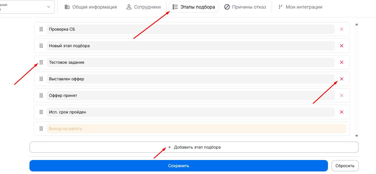 Зачем: зафиксировать этапы после передачи кандидата в работу.