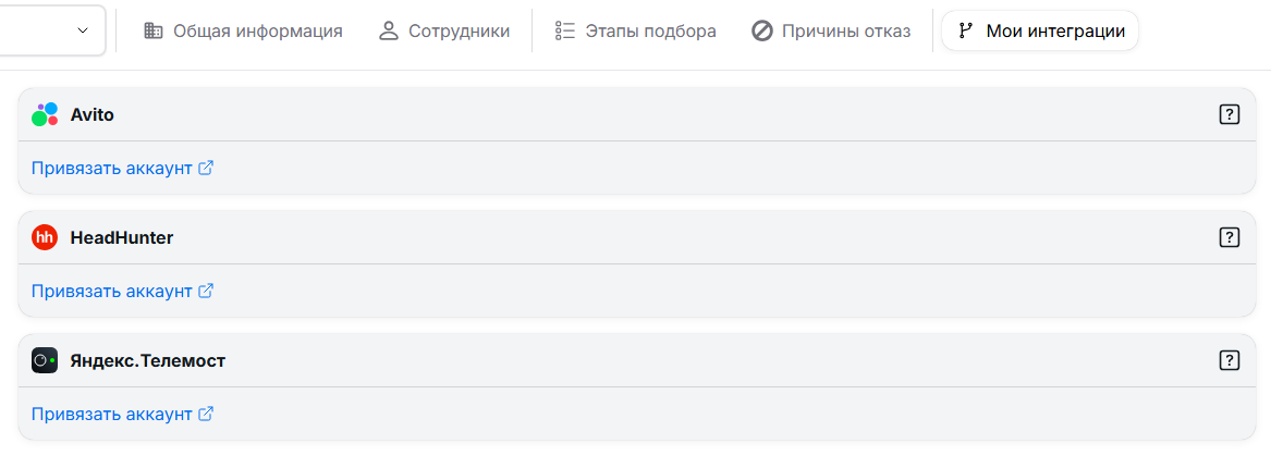 Что видишь: список доступных интеграций (может отображаться не полный перечень).