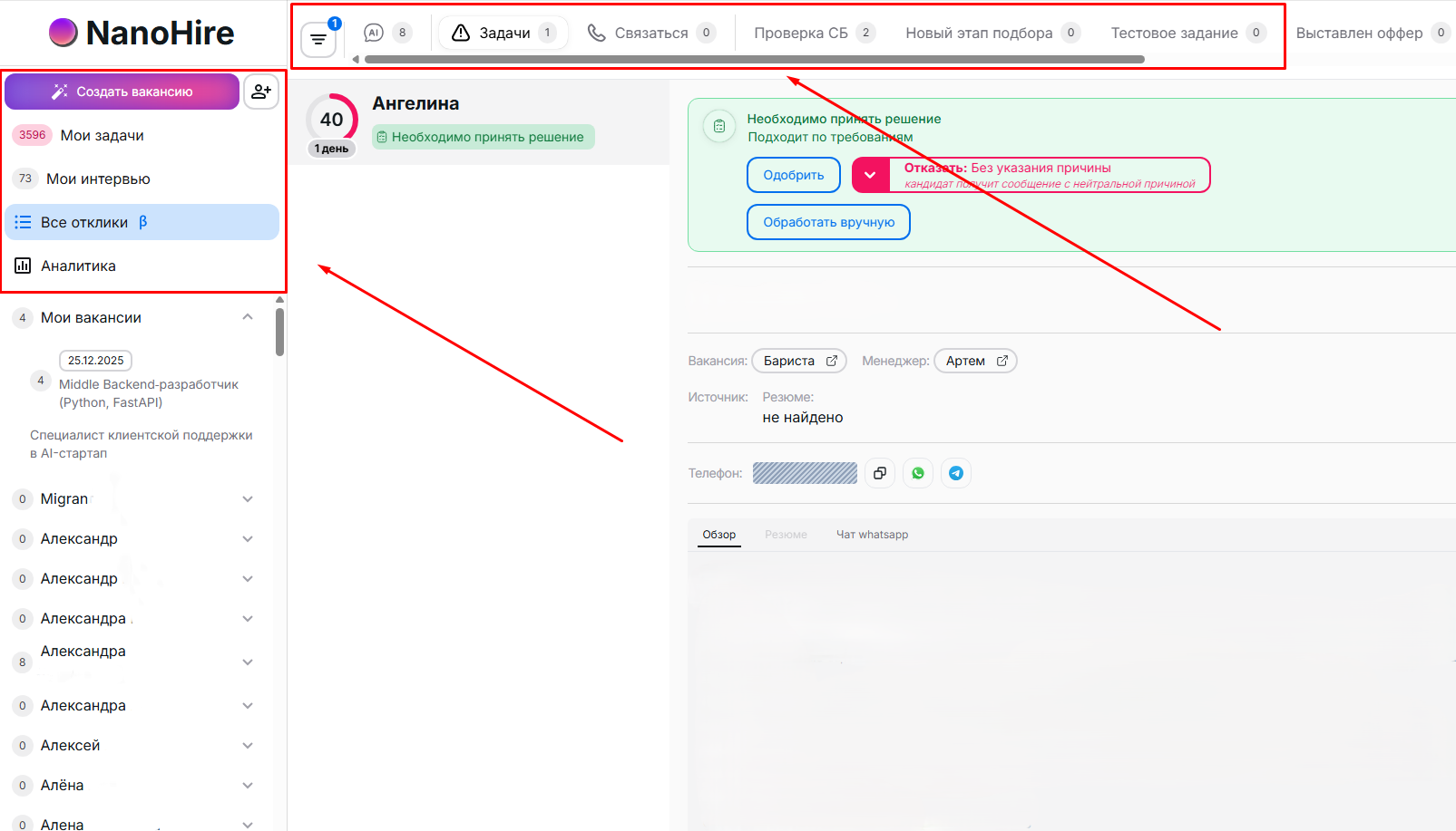 ➕ «Создать вакансию» самая частая кнопка, подробный гайд по созданию вакансии — в соседнем разделе.