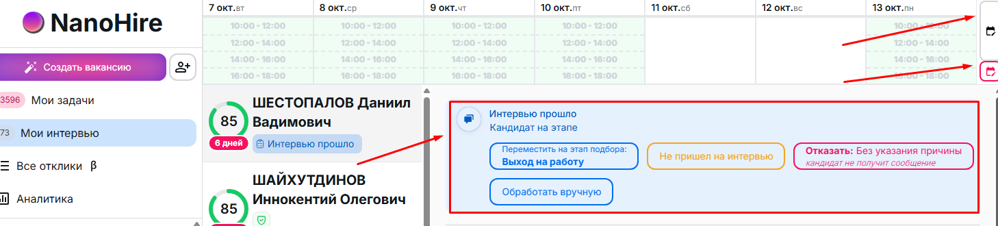 Зачем: видеть кто ожидает интервью, кто прошёл, и сразу закрывать этап.