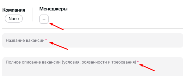 Цель: завести черновик вакансии.