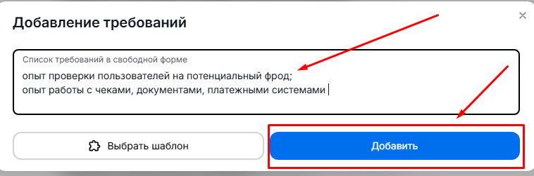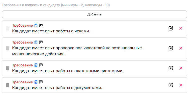 Требования — критерии, по которым AI оценивает релевантность кандидата.