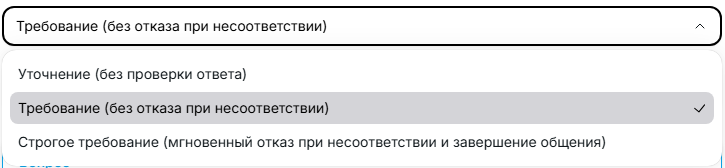 По умолчанию AI сам примет решение о строгости и типе проверки, но вы можете отредактировать после создания самого требования/вопроса.
