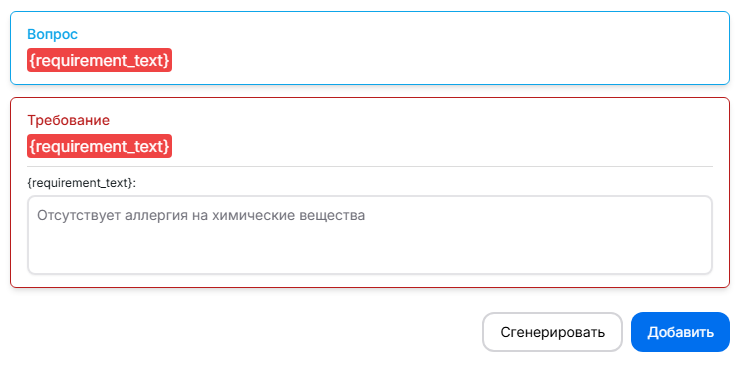 Цель: настроить, что AI проверяет (требования) и что просто собирает для удобства (вопросы).