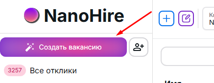 - Каждая вакансия в NanoHire создаётся отдельно и должна быть привязана к источнику откликов (объявление), чтобы AI мог получать отклики и общаться с кандидатами.