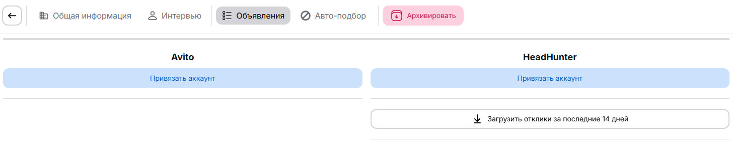 - Если вакансия подсвечена меткой 'Вакансия без объявления' - привяжите источник, иначе отклики и диалог не начнутся.